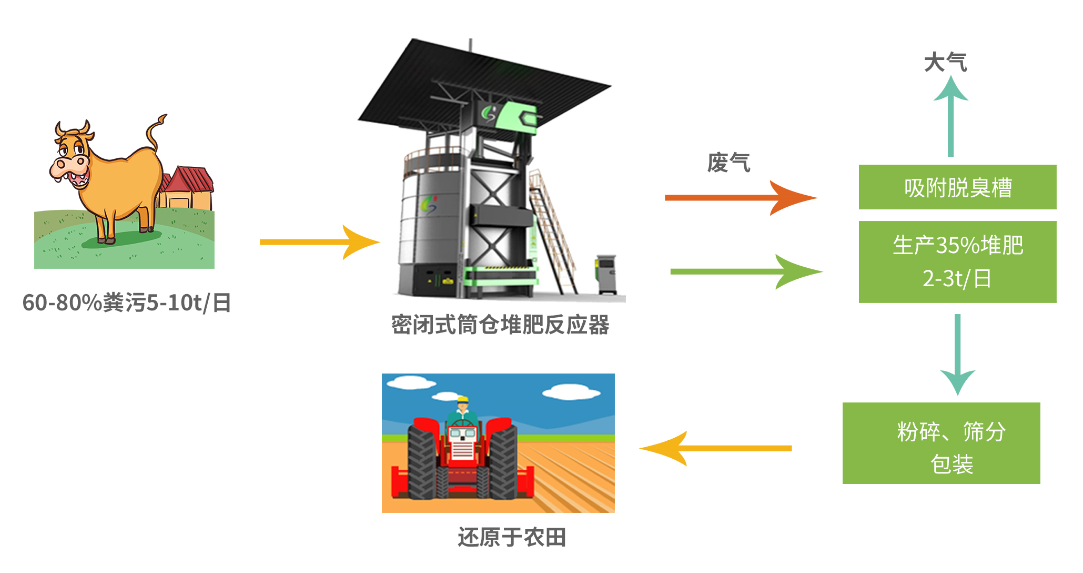 設備優(yōu)勢:中型化,密閉筒倉堆肥,露天或室內布置,一體化化設備+除臭,自動化操作控制+遠程監(jiān)控。